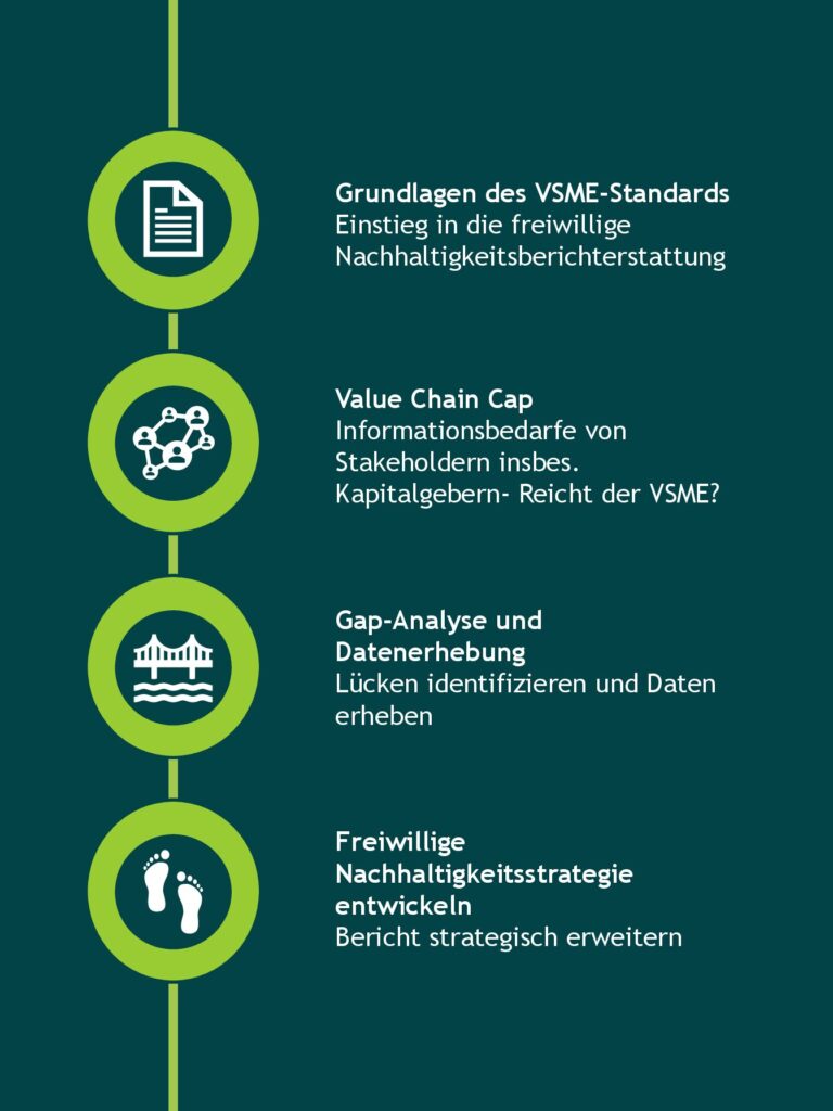 At the end, you will have a realistic roadmap in your hand that you as a company or organisation can use to report voluntarily and effectively - step by step.